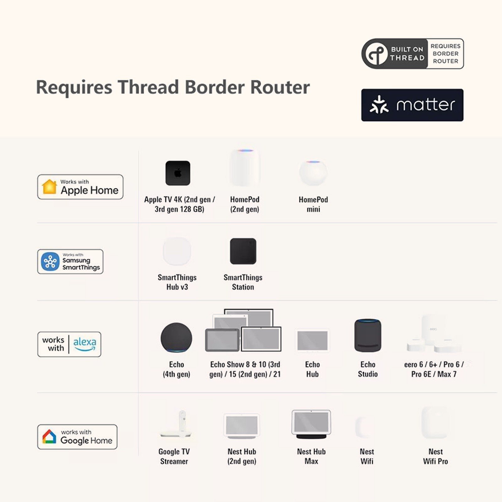 - اتصال مباشر بالشبكة المنزلية عبر شبكة WiFi مع مزايا تقنية matter العالمية.