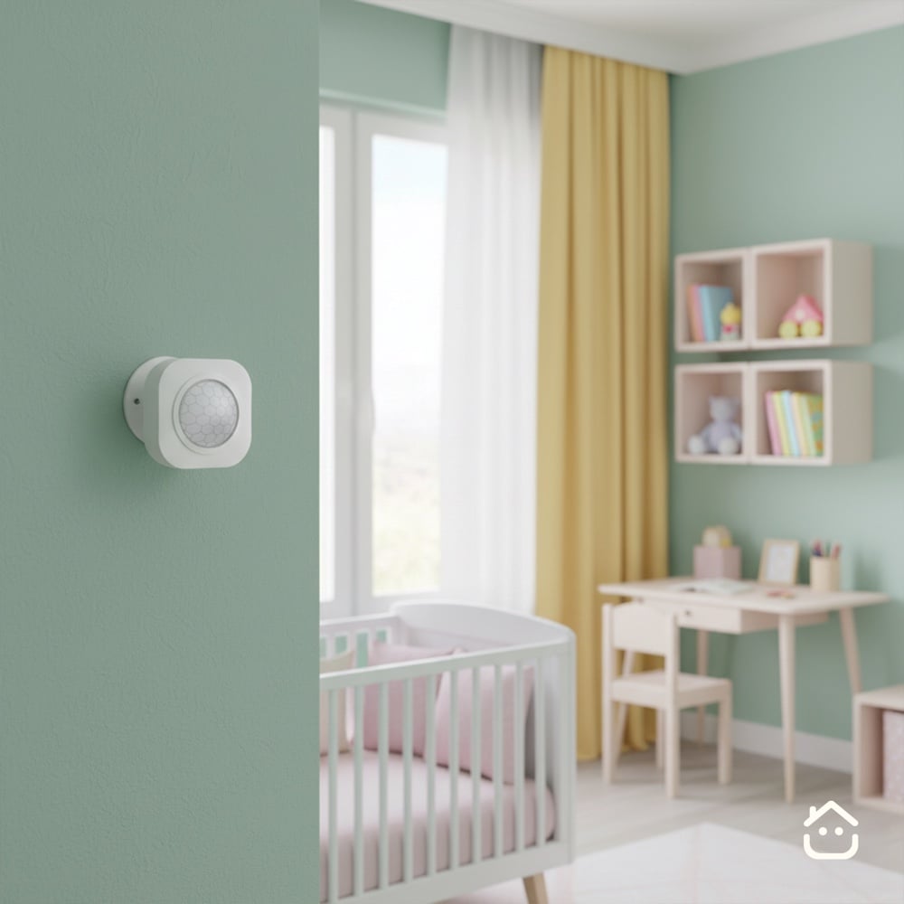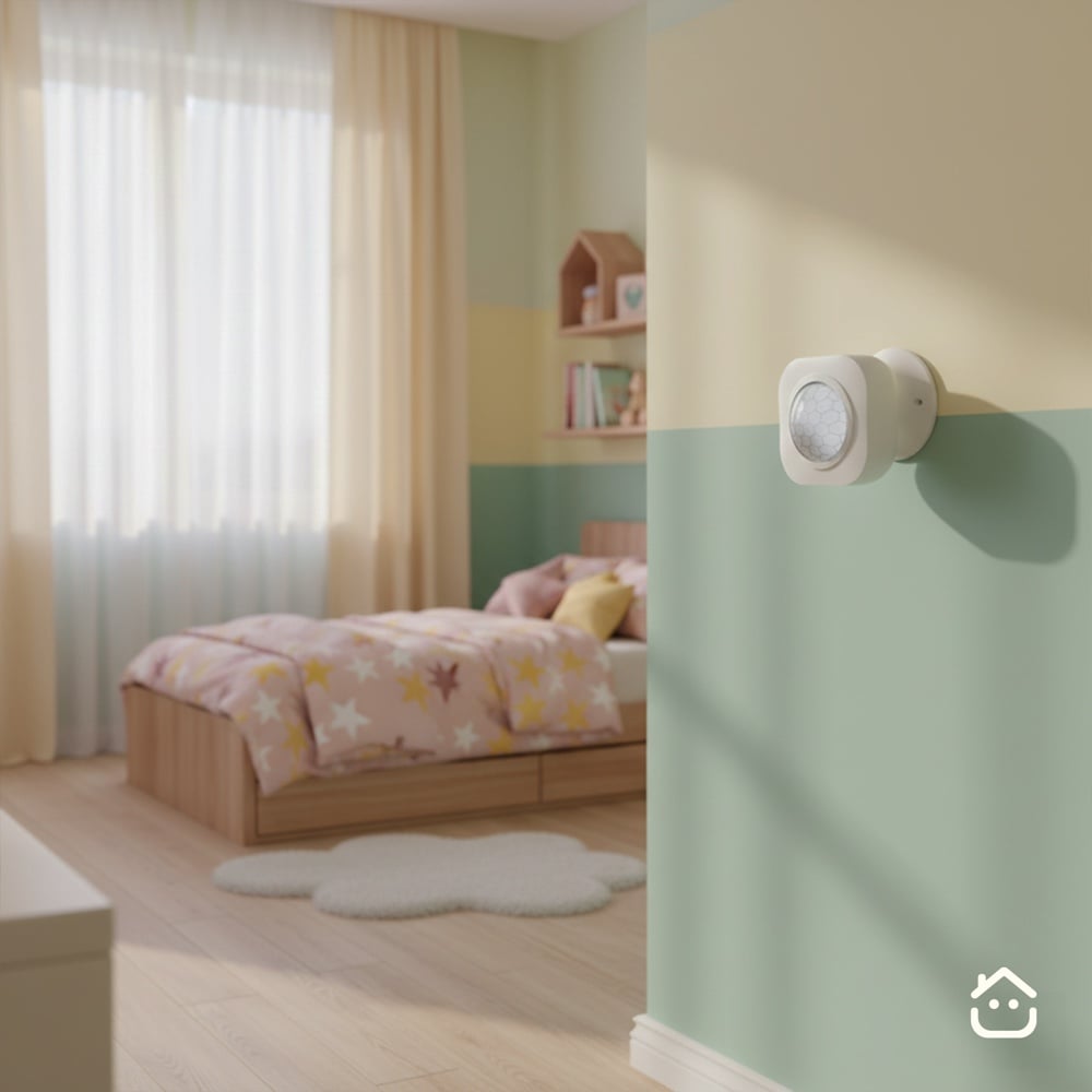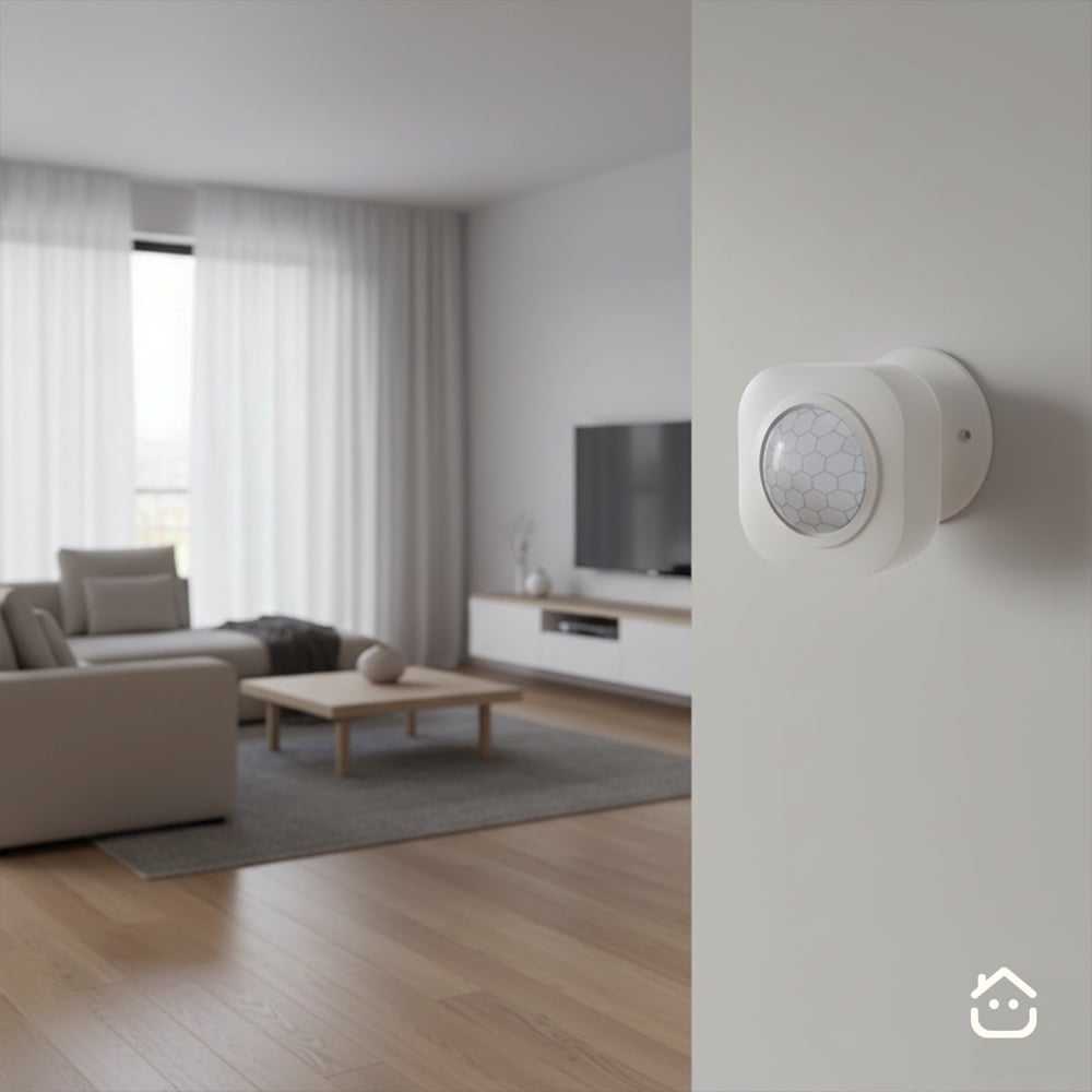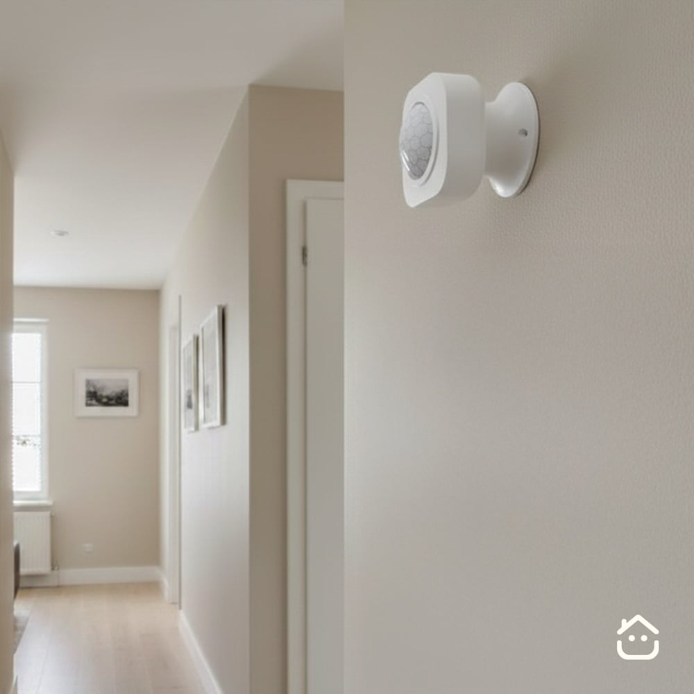 حساس الحركة الجداري الذكي (PIR) يقرأ الحركة داخل الغرفة ويربطها بمشاهد مثل إذا دخل أحد "شغل الإضاءة” وإذا ما فيه حركة "طفي النور لتوفير الطاقة”.